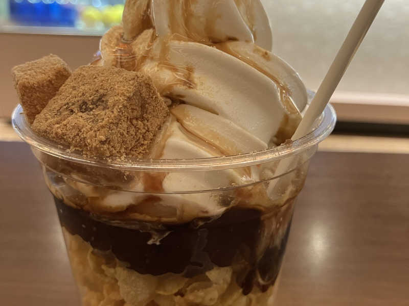 甘いコーンフレークに甘いあんこに甘いソフトクリームに甘い黒蜜。デザートには重すぎるが軽食としてなら…