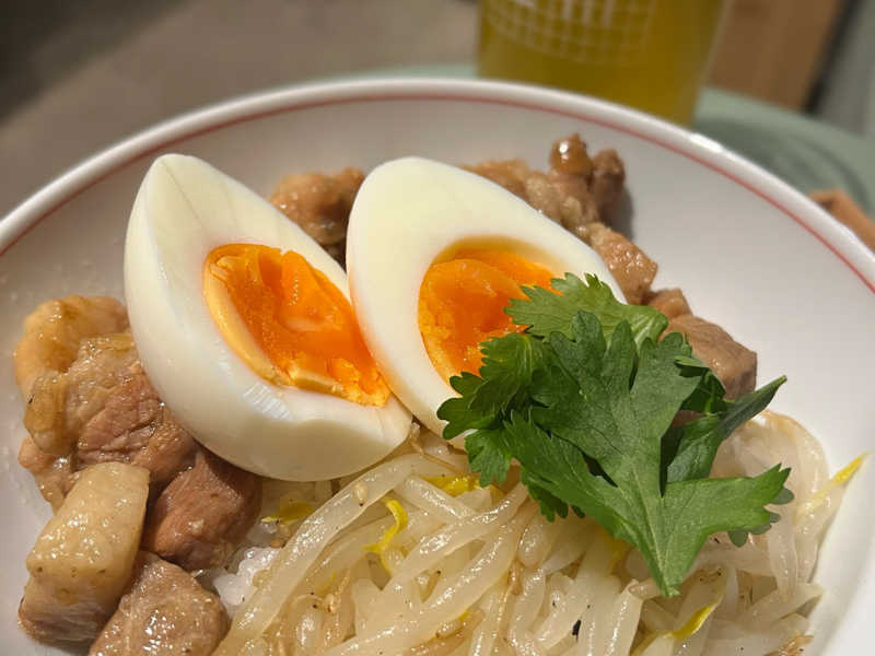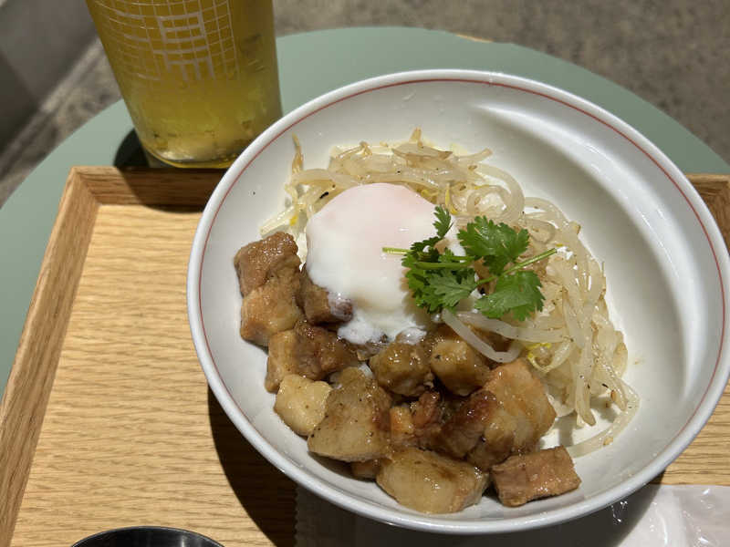 温玉ないけど半熟卵で作ってくれた🥚 サウナ上がりめちゃくちゃうまかった、、