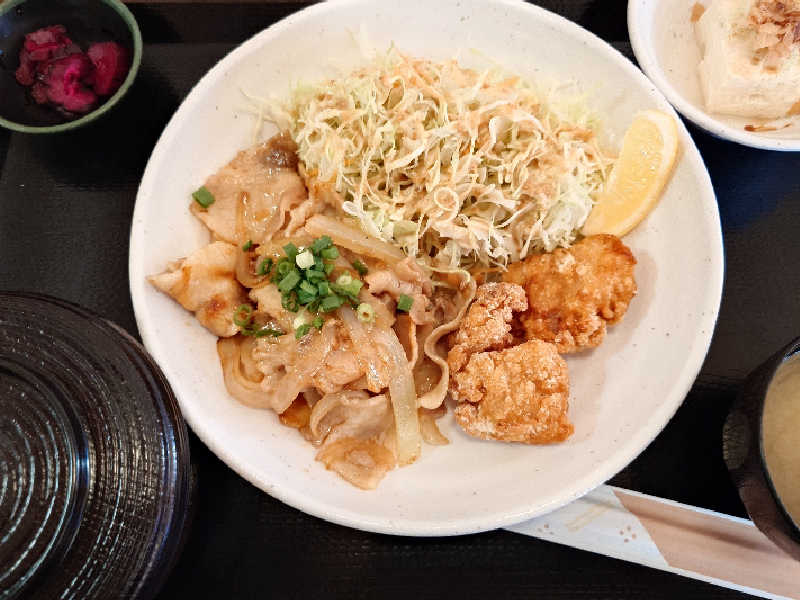 お刺身も牛タンも食べたい!に丁度いいメニュー(^^)トロロも沢山なので麦ご飯を大盛にすればよかった😋