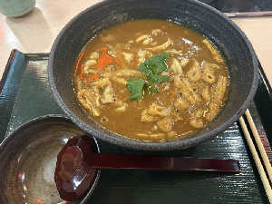 シンプルなカレーうどん。麺は細めかな?出汁が効いてて美味しい。