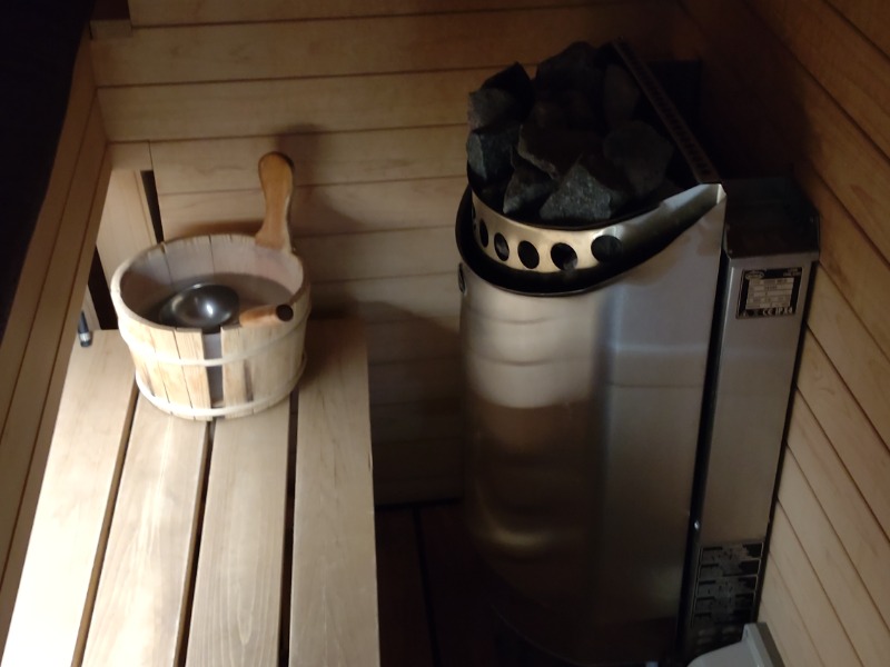 またサ室は当然大きく無いため、セルフロウリュはひしゃく半分の量でも中々破壊力があります