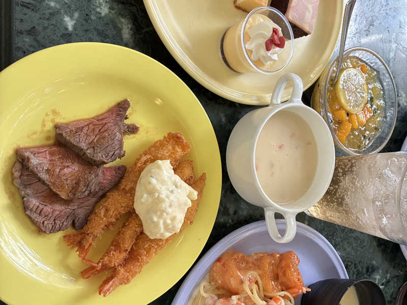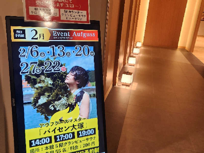 3セットこなしてから、「スパ+」エリアへ。夢の国が一望出来るスタジアムサウナは圧巻の広さ。ストーンも天井まで鎮座してました。スマホ持ち込みOKで誰もいなかったので動画保存。17時〜のアウフイベントは「バイセン大塚&なーぎー」師弟のアウフバトルに参加!最後にスチームサウナを楽しんで大満喫で終了。