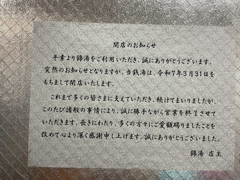 明日で閉業される錦湯へ最後のご挨拶🥹