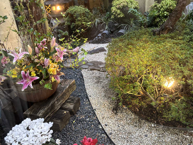18℃でもじゅうぶん冷たい、バイブラがんがんの水風呂から、露天スペースには日本庭園風のお庭に座るところがいっぱい。落ち着いて休憩できました。