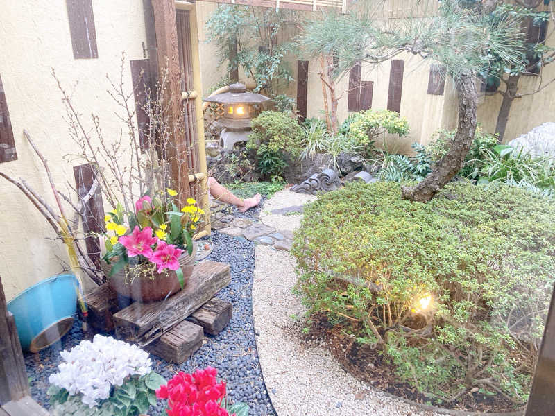 脱衣所に入るとお庭が見えるがすぐ横のスペースは人の立ち寄りがなされていなかったのに、今はプラ椅子🪑は置いてあるわ、ヨガのおじさんが、ヨガの立技ポーズを決めてるわ、なかなか多様化の波に飲まれている感が否めなかった。