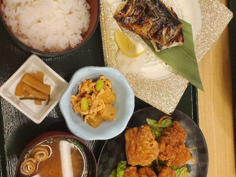 塩鯖にも唐揚げにもレモンがついてて嬉しい。唐揚げは私には、ちょっと味濃かったかな