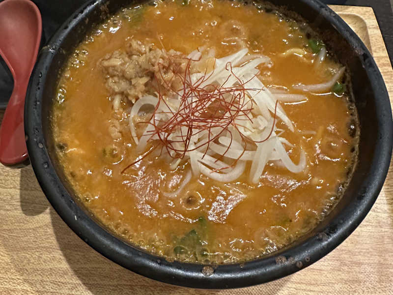 グツグツ煮立った激辛スープとホルモンの相性がいい至極の一杯。 ニンニク増も可能。