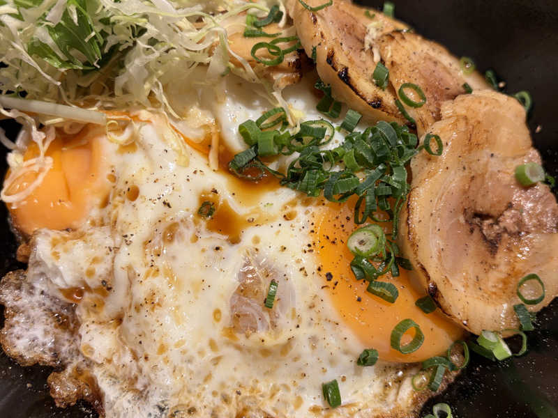 太めのチャーシューとエッグダブル、お腹いっぱい。頼むときは油断してた。