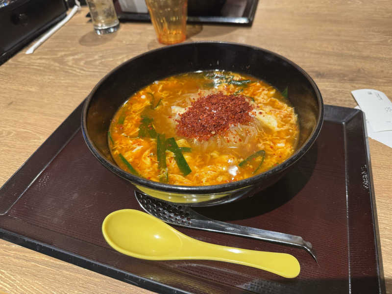 草加センターとの37周年コラボ料理(期間限定) 旨辛なスープが、食事でも汗を出してくれた。