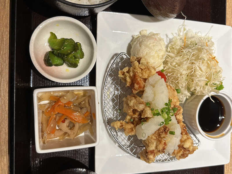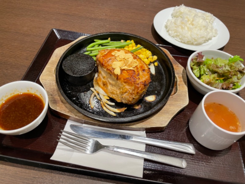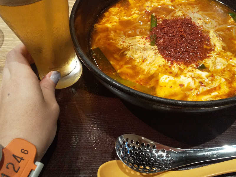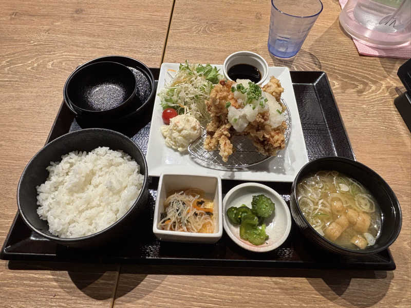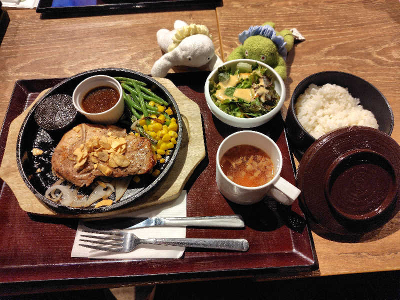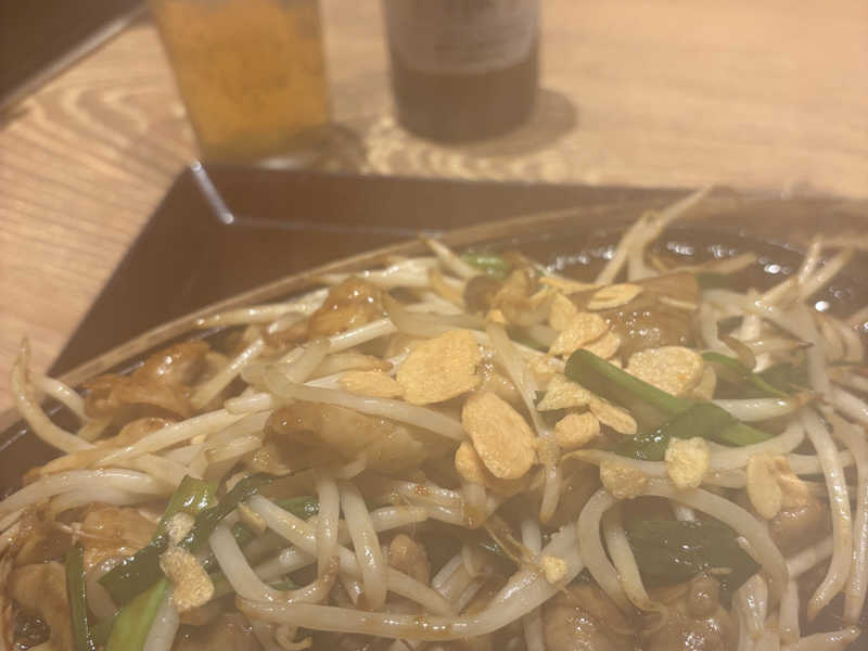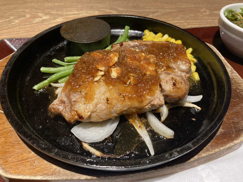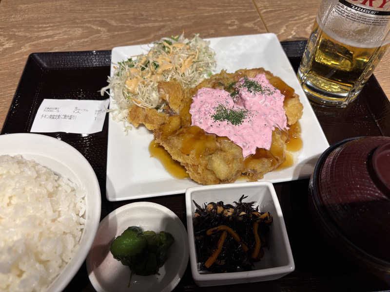 ガーリックチップが載ってて濃いめの味。 車だったのでノンアルで乾杯。 サウナの後にはオロポ一気飲み。
