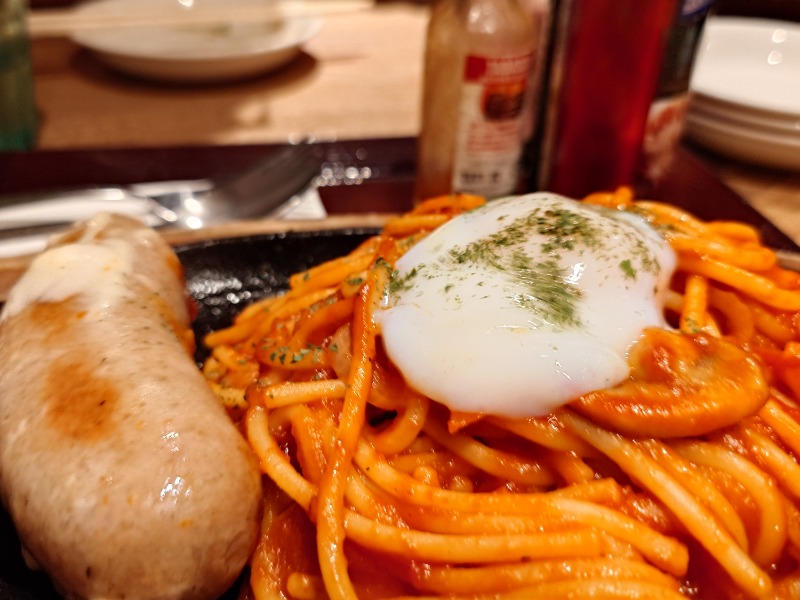 トマトが食べづらいがパスタがモチモチで美味しかった