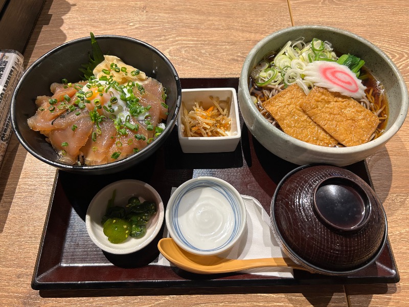 漬けマグロ丼と冷やしきつねそば🤤