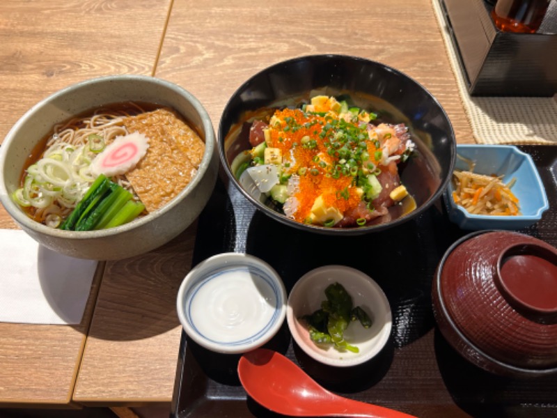 お味噌汁がわりに冷やしきつねそば大盛を添えて
