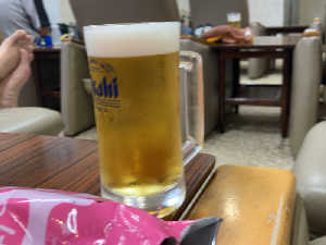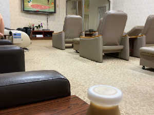 いつもの席が空いてなくて、リクライニングでスタイリー😎それだと飲みにくいので戻そうとするも戻らず🥹