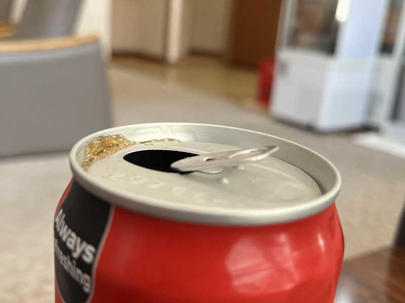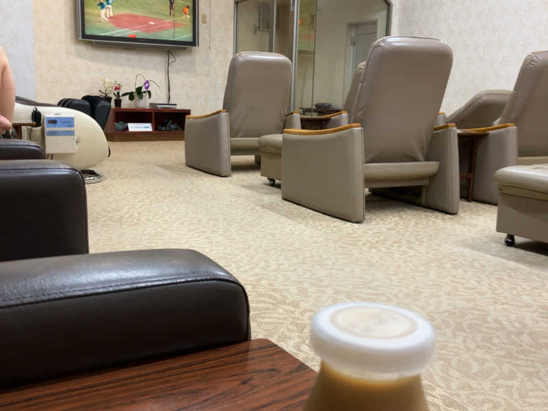 いつもの席が空いてなくて、リクライニングでスタイリー😎それだと飲みにくいので戻そうとするも戻らず🥹