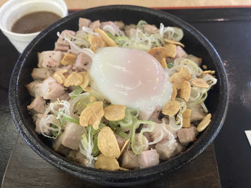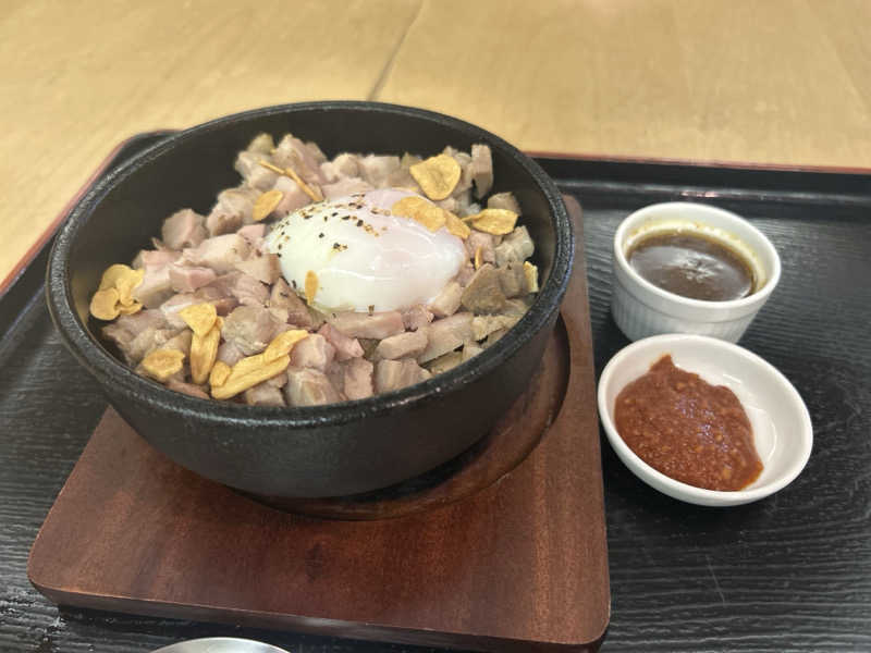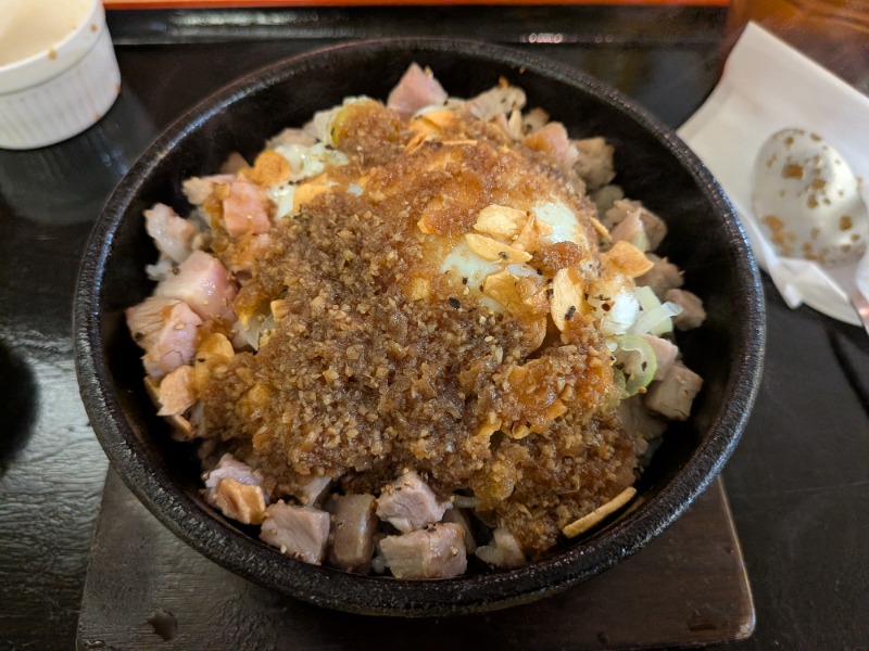 名前の通り、石焼なのでソースをかけてロウリュのようなジュワー音。ガーリック強めで本当に美味い!