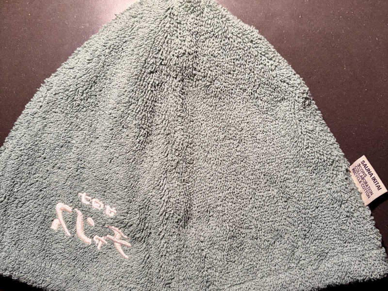 サウナイキタイ×スリコのコラボグッズを携えてイン。気に入っているんですが、一部商品に致命的なミスが...3枚目写真参照。お分かりいただけただろうか。答えは下に↓
