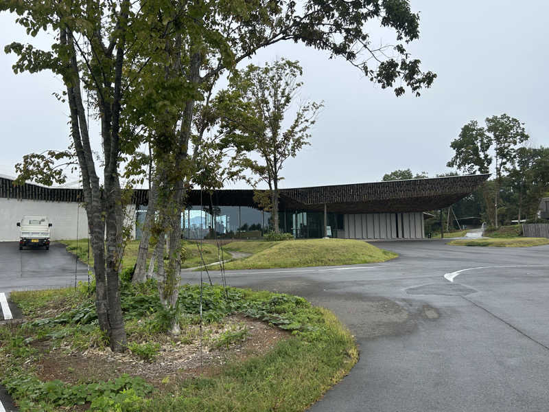 細すぎる山道を案内するナビにホントか……?!と思いつつなんとか到着 広〜!細道が嘘のような広大なスペース キャンプ利用のお客さんを横目に温浴棟へ