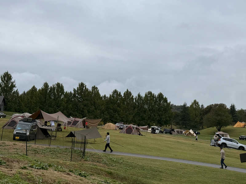 で、山の細い道を登った先に急に現れたのはオシャレで広大なキャンプゾーン⛺️