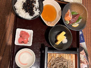 蕎麦はコシ強めだが蕎麦感薄め ジュースは量少なめ