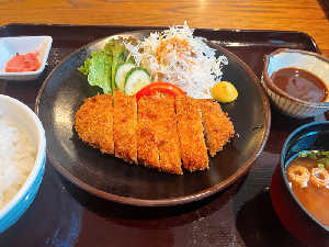 揚げたてとんかつは柔らかくて旨い😋 味噌汁はやはり赤🟥