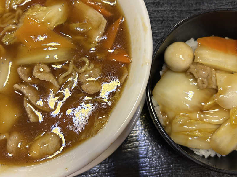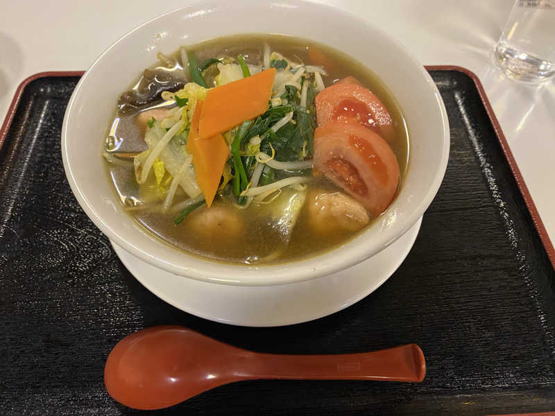 ご飯大盛り無料です。少しスパイシーでサウナ後の味覚に刺さります。