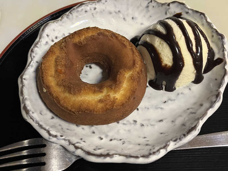 揚げたて。 ドーナツは甘くないからアイスと一緒で正解。