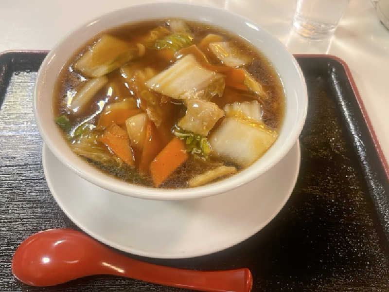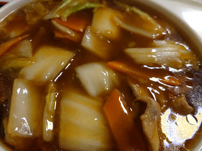 野菜たっぷりの熱々のあんと細麺と濃いめのスープが絡んで美味しかった☺️