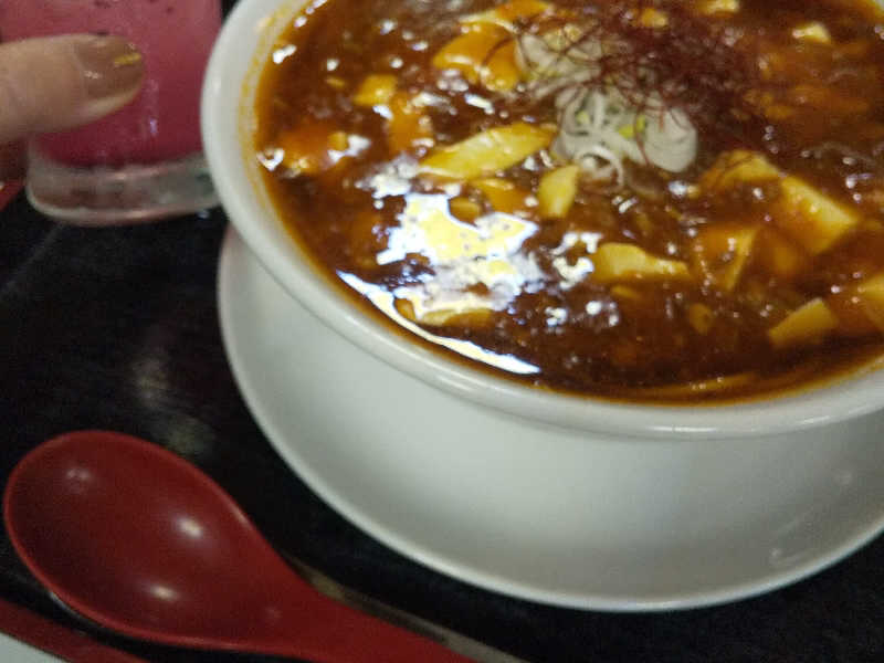 サウナ後は辛い方!!麺に唐辛子練り込まれてる 広東麺より麺にコシがあって美味♡