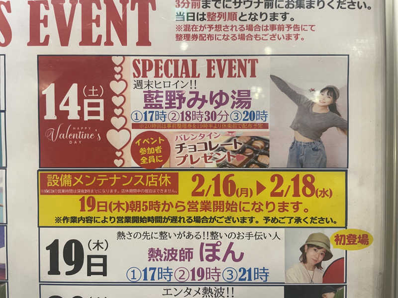 明後日から薬湯の設備点検後に今のオートロウリュストープにイベントでロウリュができなくなるらしくロウリュありきイベントが一時的に今日で最後になるらしく少し淋しく感じた🥺(遠いのでたまにしか来ないけど)