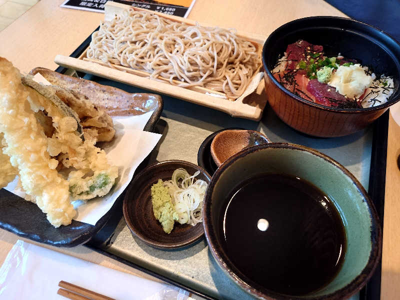 旬の天ぷらと鰹の漬け丼に蕎麦までついて盛りだくさん