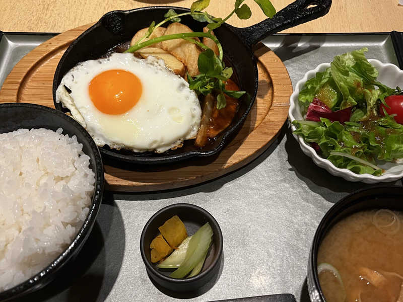 ダイエット中だがご飯大盛り。トッピングの目玉焼き、50円はお得。あと、チョレギサラダ、美味かった。