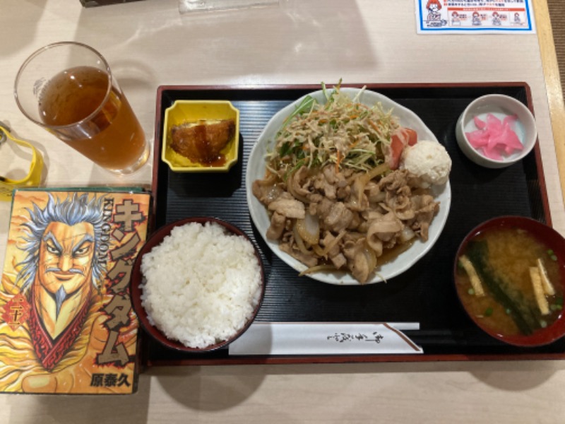 ボリューム満点で美味しい安定の生姜焼き定食。