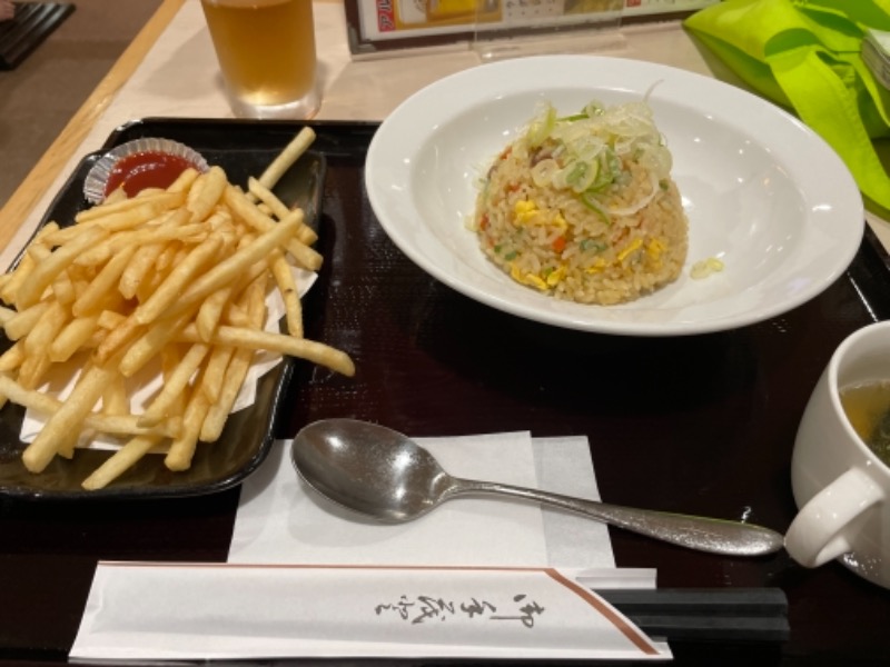 ご飯、大盛無料。750円は安い。グラスビール+150円と。