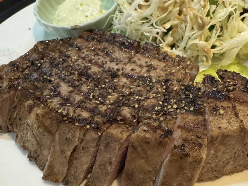 レア目の肉厚カツが乗ったカレー。 肉も脂も厚いのは良いですが、もう少し柔らかい方が好みです。