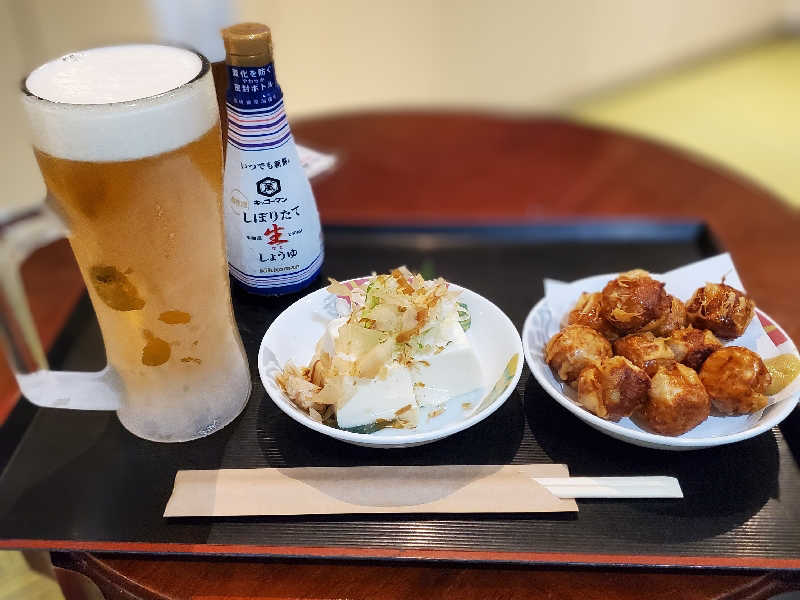 ビールセットは枝豆と梅きゅうりで。つまみの量も多めでクエン酸サワーのメガを2杯追加😂