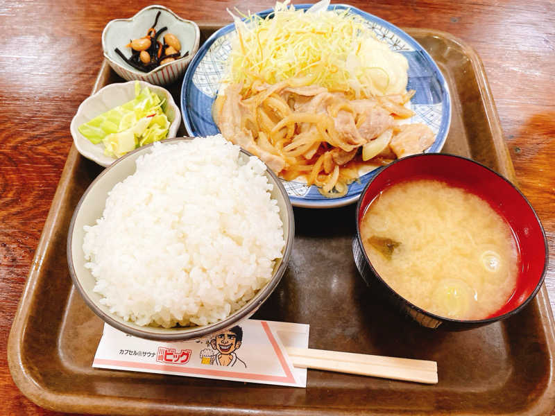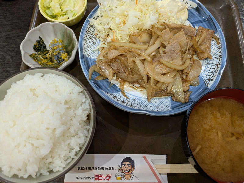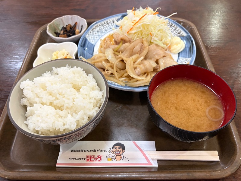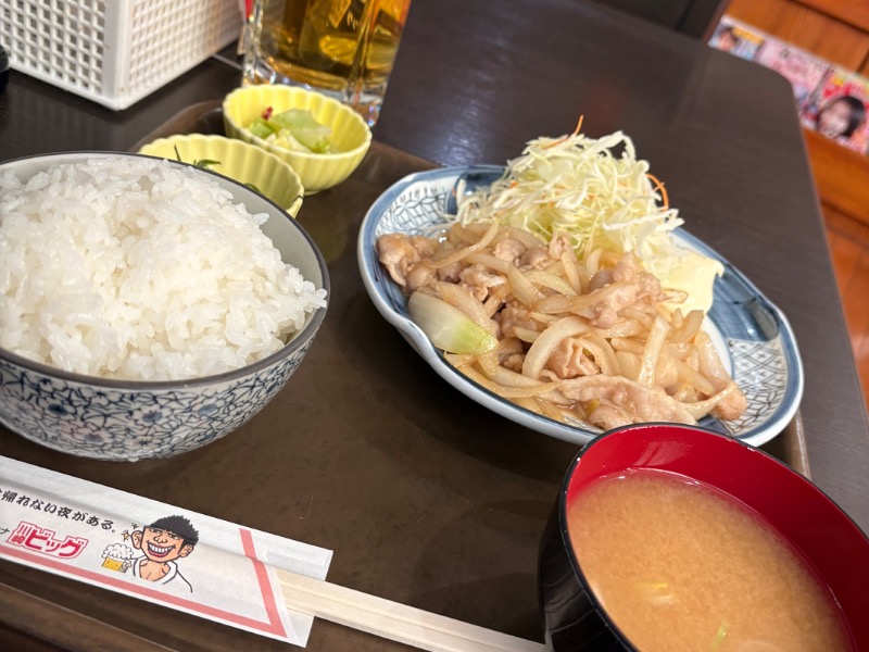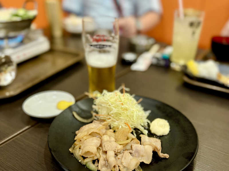 サウナ上がりのビールに生姜焼き定食最高❗むっちゃうまい。