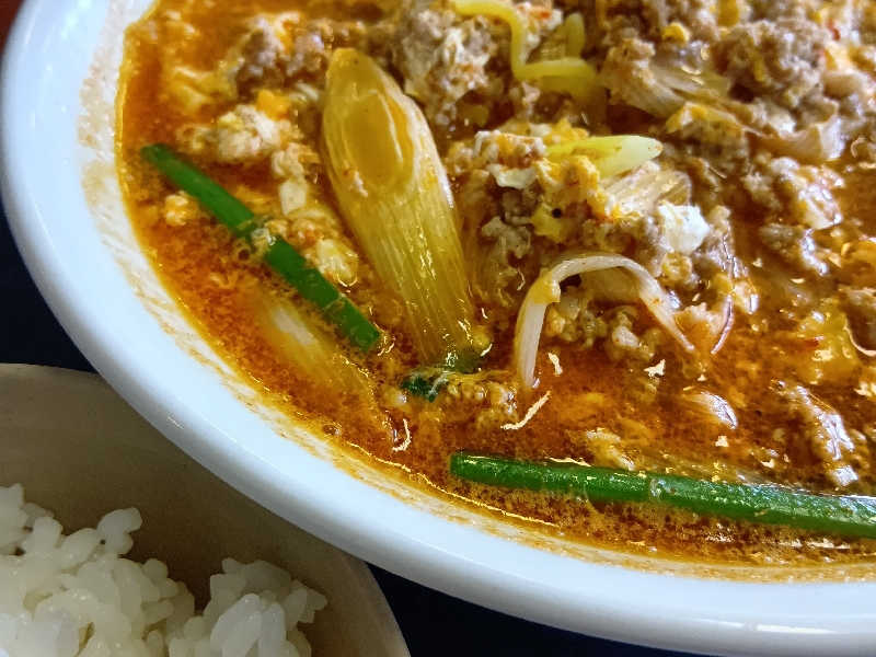 見た目に反してNOにんにく ひき肉ねぎ卵ニラの素材引き立つ 辛さはマイルド 鶏ガラスープ トロミなし