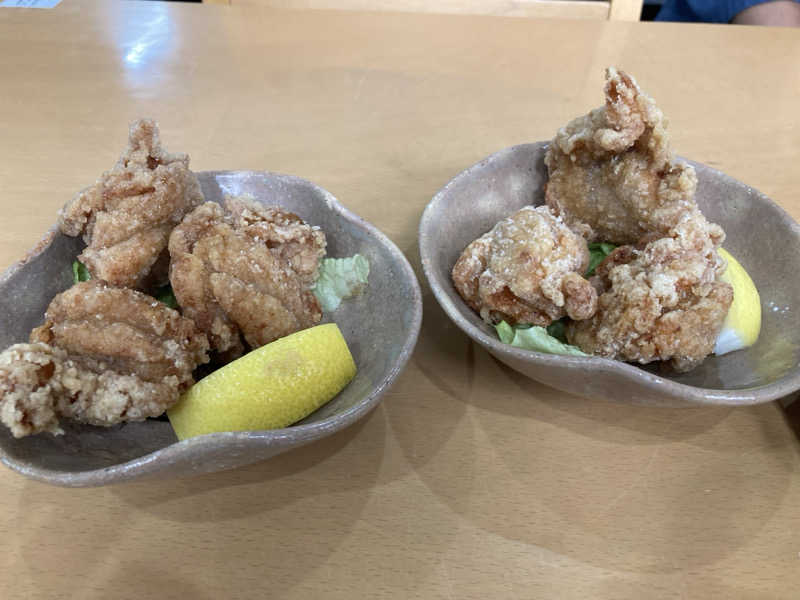 ユーランド秘伝のたれで食べる竜田揚げ、うますぎるよぉ〜🤤 ご飯は少なかったー!