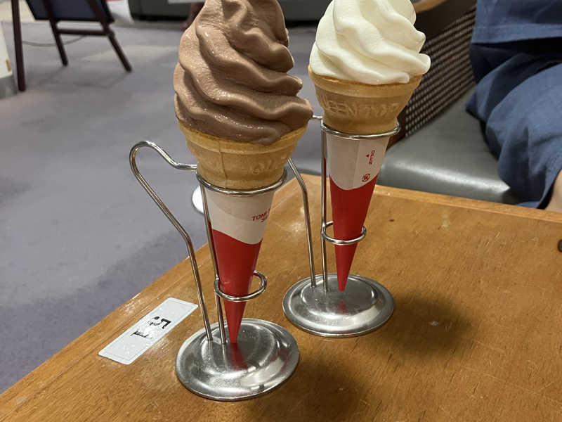 食堂に行ったが何故かフードが出せないらしくドリンクとデサートのみだった。 ソフトクリームは美味しい。