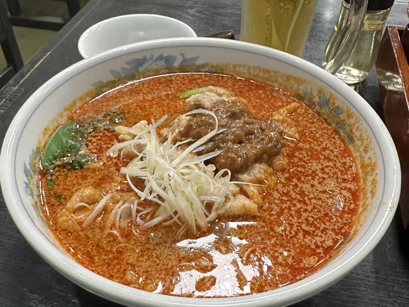 担々麺。なぜか食べたくなる。癖になる味。 お供はやっぱりビール🍺