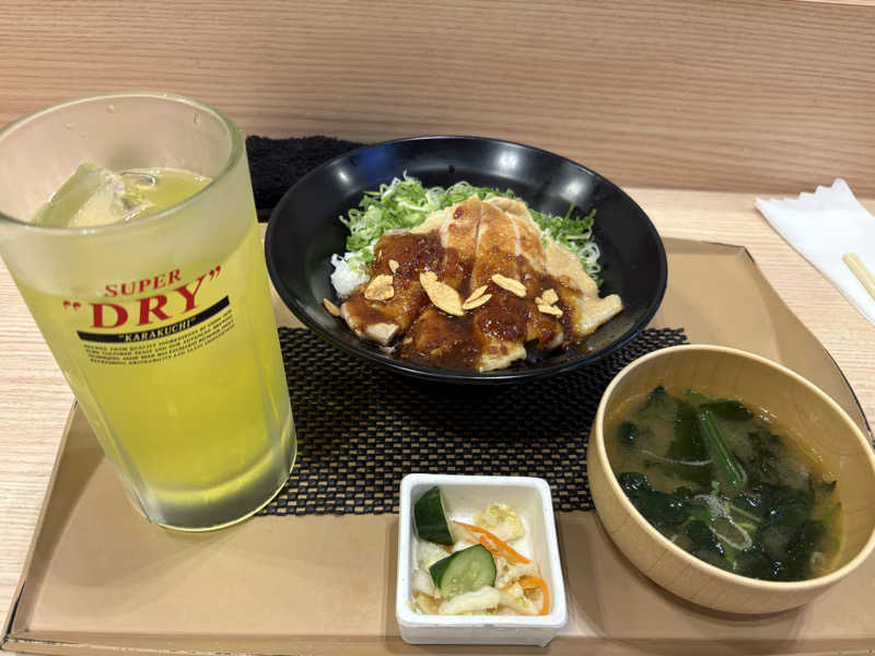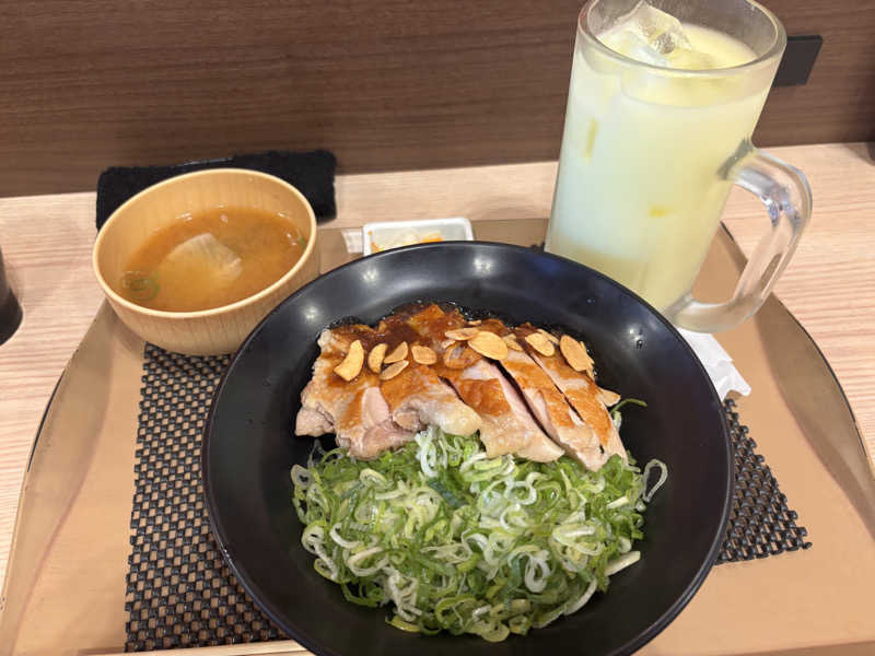 2倍オロポをセットに。 カリカリのニンニクチップとネギの組み合わせがチキンを美味く食べさせてくれる。