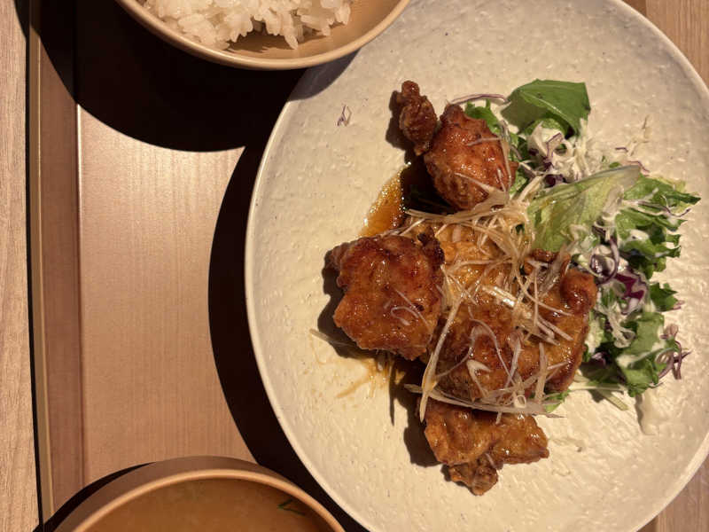 油淋鶏定食とサウナイキタイメンバーズ特典のミニソフトをいただきました🍦
