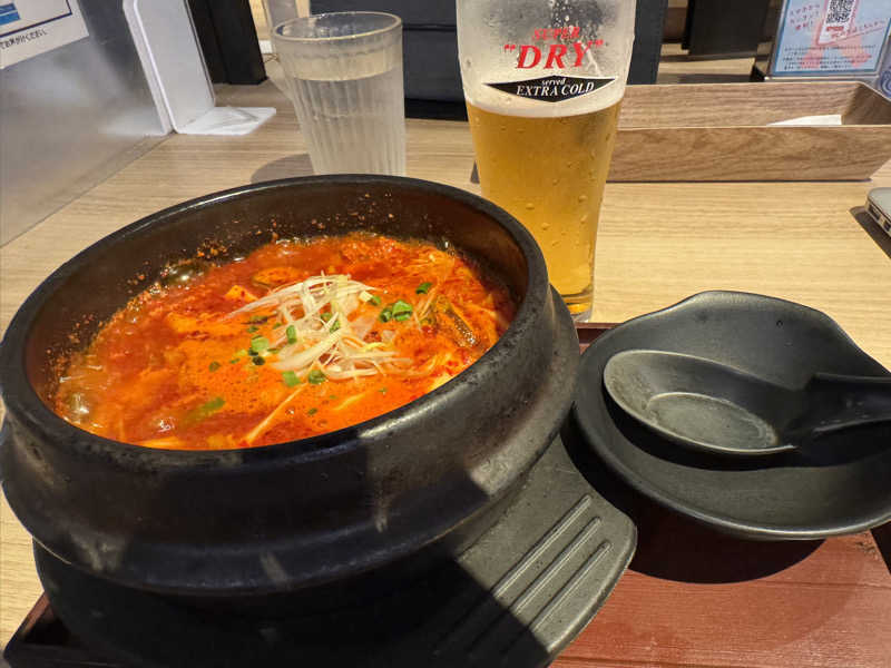 スンドゥブチゲの〆の雑炊が楽しみで来たと言っても過言ではない。