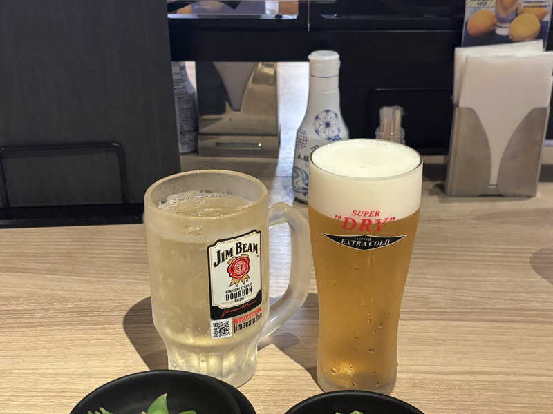 アサヒハーフ&ハーフ。おそらくこの日日本で一番美味いビールを飲んだ