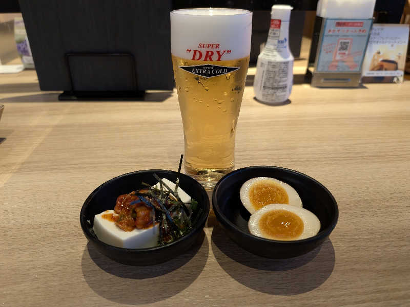 エクストラコールド+味玉+ヤンニョム豆腐 このあとも色々といただきました。どれも美味でした!
