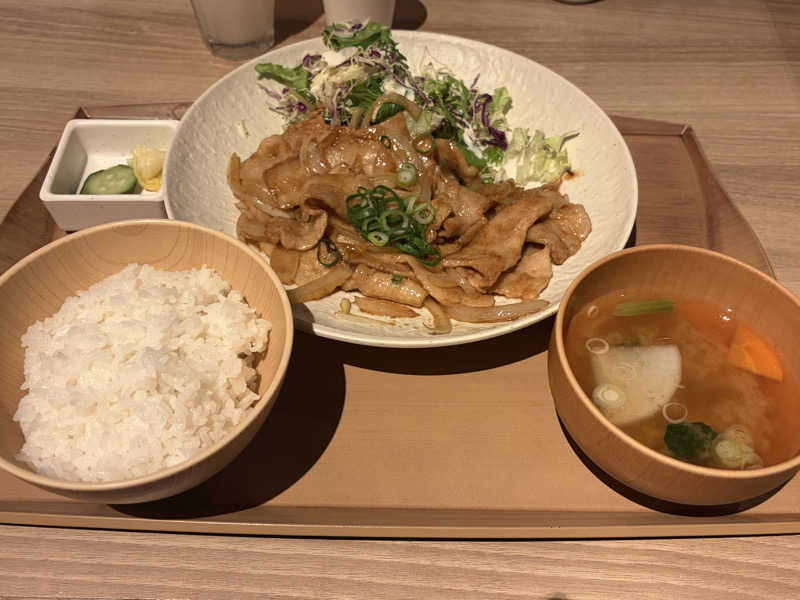 迷った時は生姜焼き。サウイキ特典のソフトクリーム、貰ったドリンク無料券で小ビールも頂きました。
