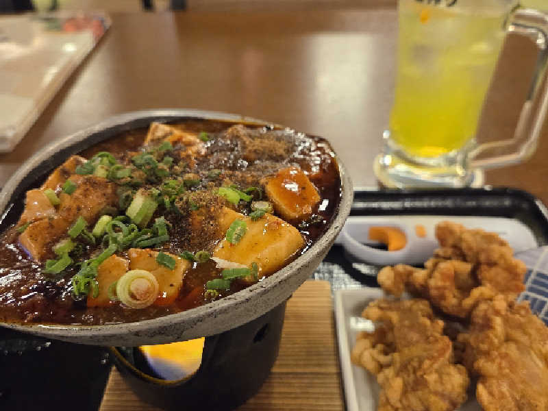 四川麻婆豆腐と唐揚げ オロポも忘れずに