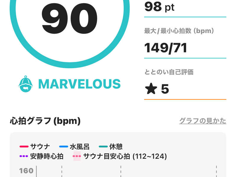 サウナ6分、水💦1分、外気浴5分で限界、内気浴5分、