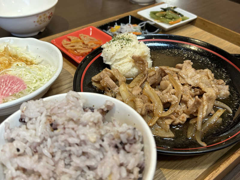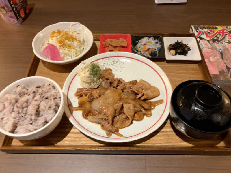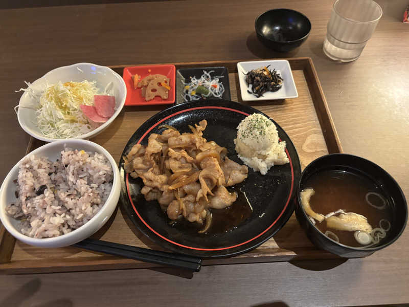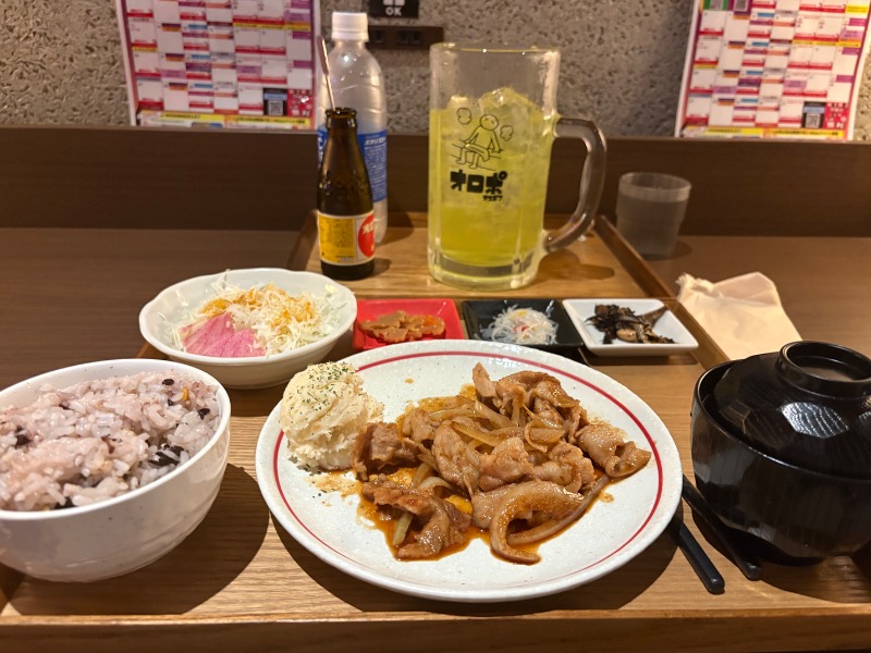 五穀米なのがとても良い。 程よく生姜が効いていて美味かったです。 …オロポがやたらデカい 笑